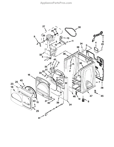 Causes of failure can include normal wear and tear from the constant use of the dryer, damage from an external force, or misalignment from the door being improperly closed or hit. Over time, these factors can lead to the weakening or breaking of the door catch.
