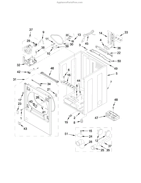 This lower cabinet base replaces a worn or damaged support panel that stabilizes the appliance and houses lower components. Restoring the base improves cabinet alignment and helps prevent vibration and under-cabinet damage. What it does: