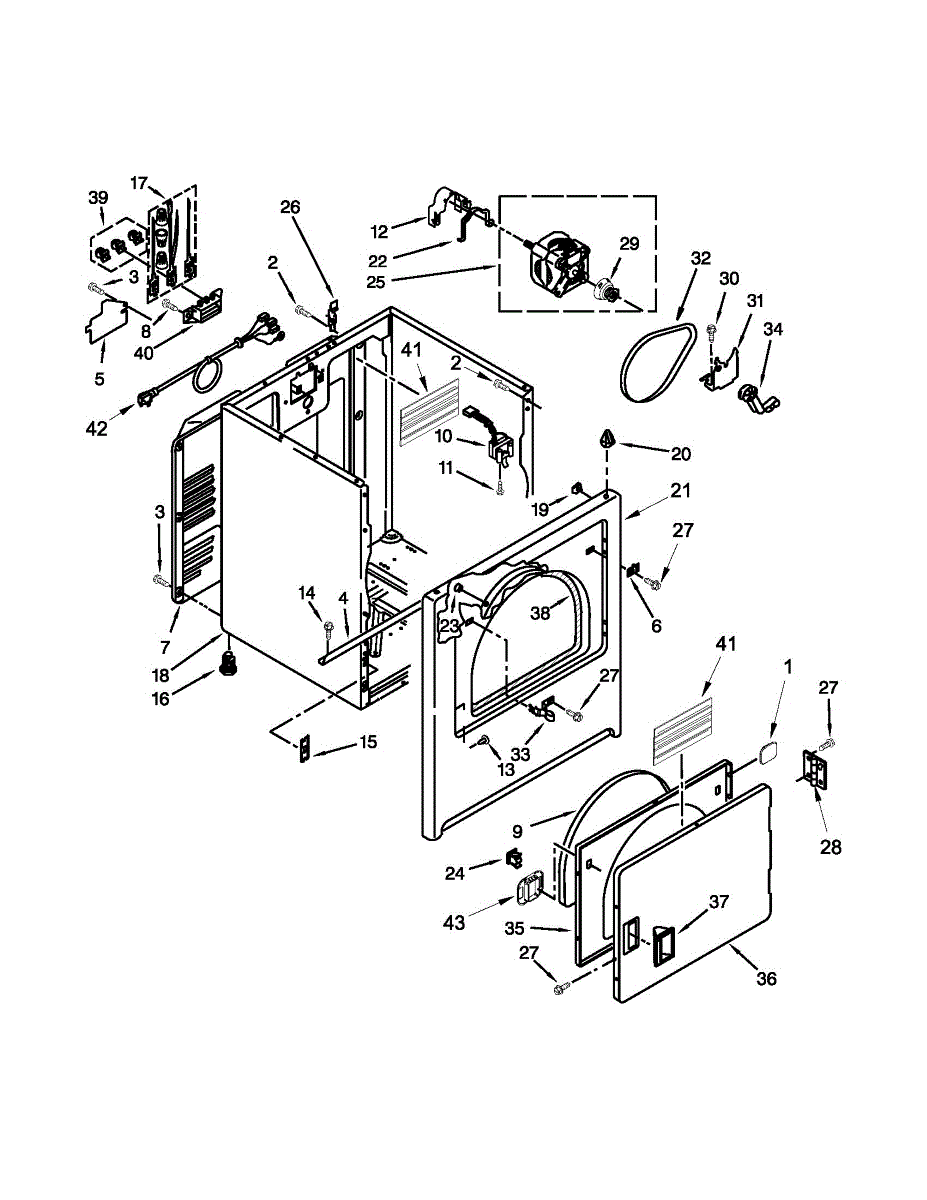 Fits all Whirlpool-made dryers (Whirlpool, Kenmore with prefix 110, Roper, KitchenAid, and Estate). Matching belt 341241 and rear support rollers 349241T. Whirlpool dryer repair manual 677818L.