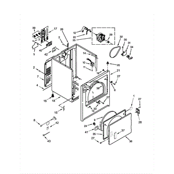 Fits all Whirlpool-made dryers (Whirlpool, Kenmore with prefix 110, Roper, KitchenAid, and Estate). Matching belt 341241 and rear support rollers 349241T. Whirlpool dryer repair manual 677818L.