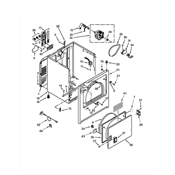 Dryer outer cabinet that houses internal components. Replace if your cabinet is rusted, dented, cracked, or damaged, compromising structural integrity.