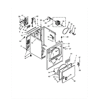 Dryer outer cabinet that houses internal components. Replace if your cabinet is rusted, dented, cracked, or damaged, compromising structural integrity.