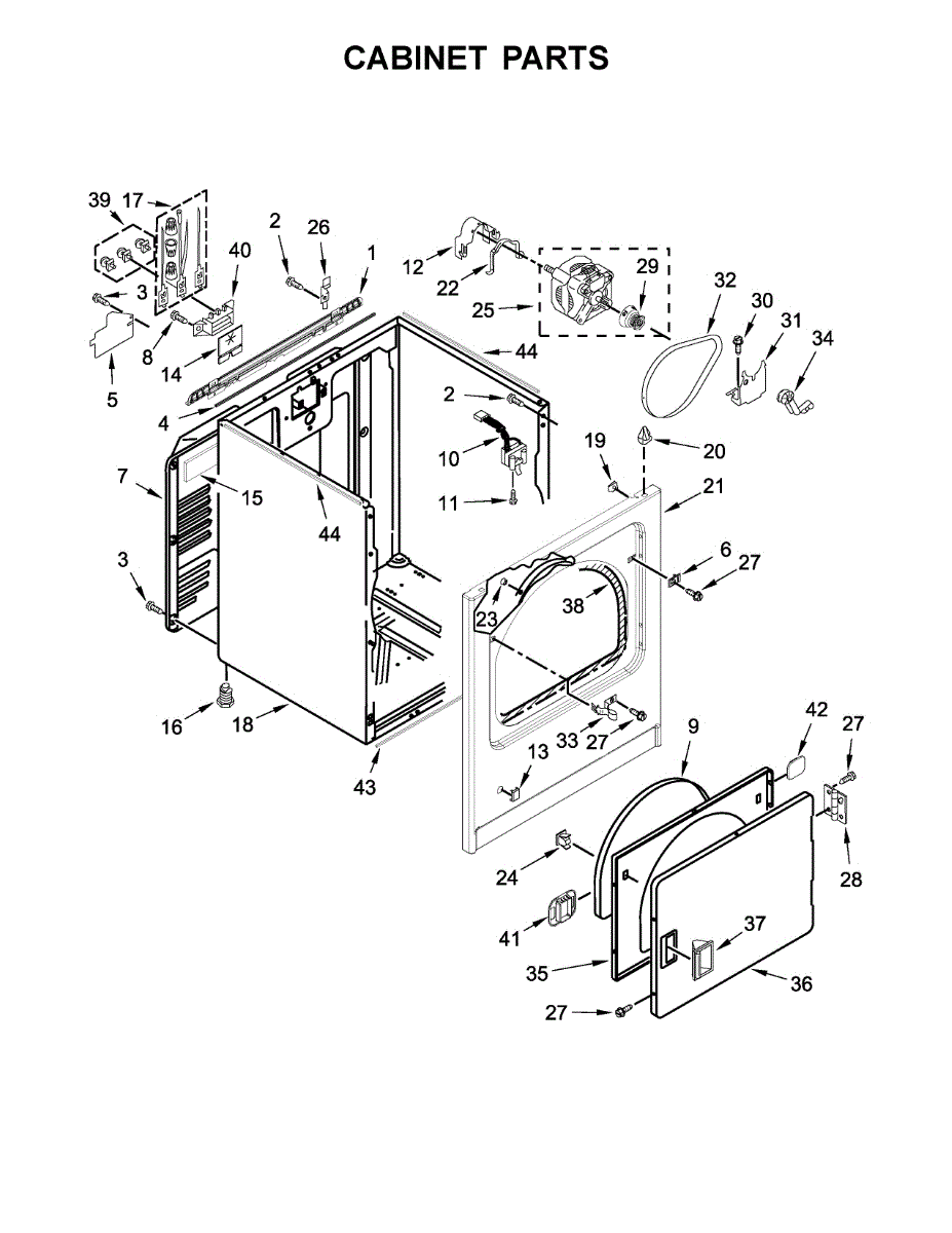 This rear panel is the exterior back cabinet piece that covers and protects a dryer or washer's internal components and provides mounting support for rear-mounted parts. It restores the appliance's structural back and keeps lint, moisture, and debris out. What it does: