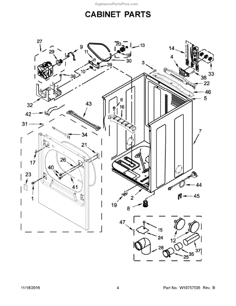 The Belt is an OEM replacement part for Whirlpool clothes dryers. It is the drive belt responsible for transmitting rotational motion from the drum motor to the tumbling drum inside the dryer cabinet. Causes of a bad belt include drying, cracking, and breakage due to age, heat exposure, or excessive stretching over repeated use. Lost elasticity means the belt can no longer handle high-speed drum rotation. Symptoms of a bad dryer belt include: