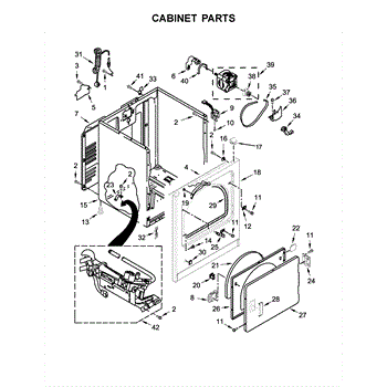 Causes of a bad door catch can include wear and tear of the plastic tang and spring from years of repeated opening and closing of the dryer door. Over time, this limits its ability to fully engage and latch securely.