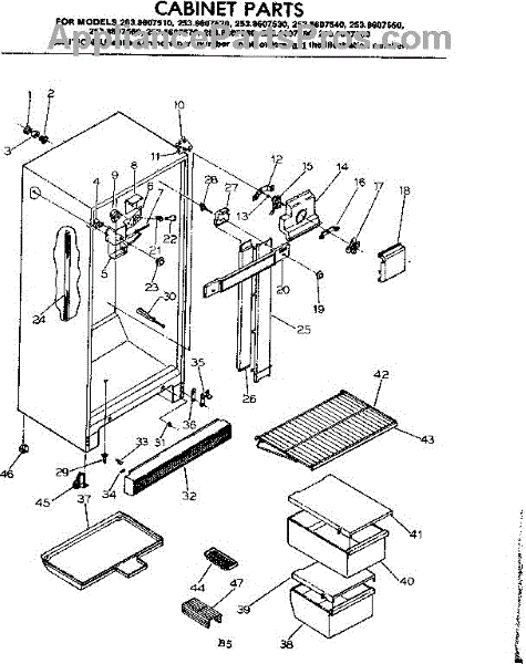 Parts for Kenmore 253.8607690 (2538607690, 253 8607690): Cabinet Parts
