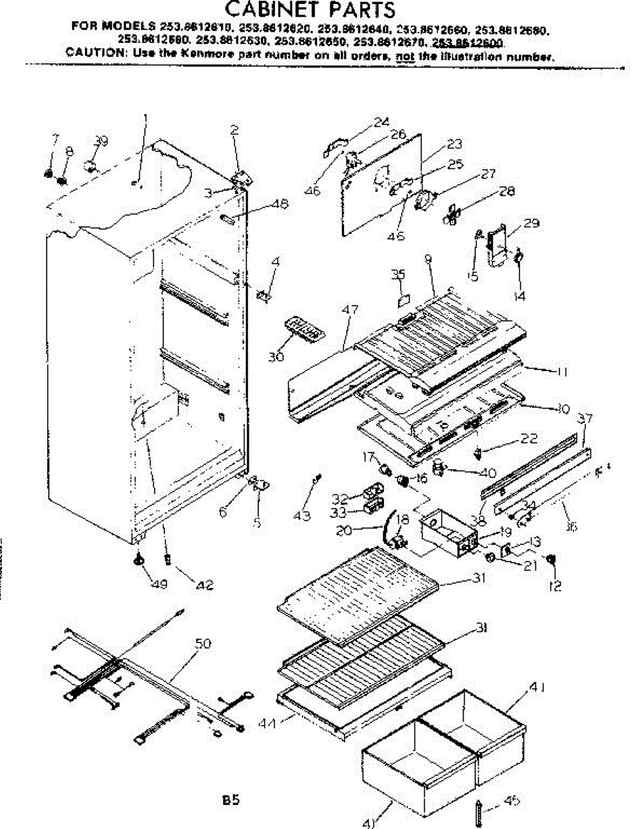 Parts for Kenmore 253.8612670 (2538612670, 253 8612670): Cabinet Parts