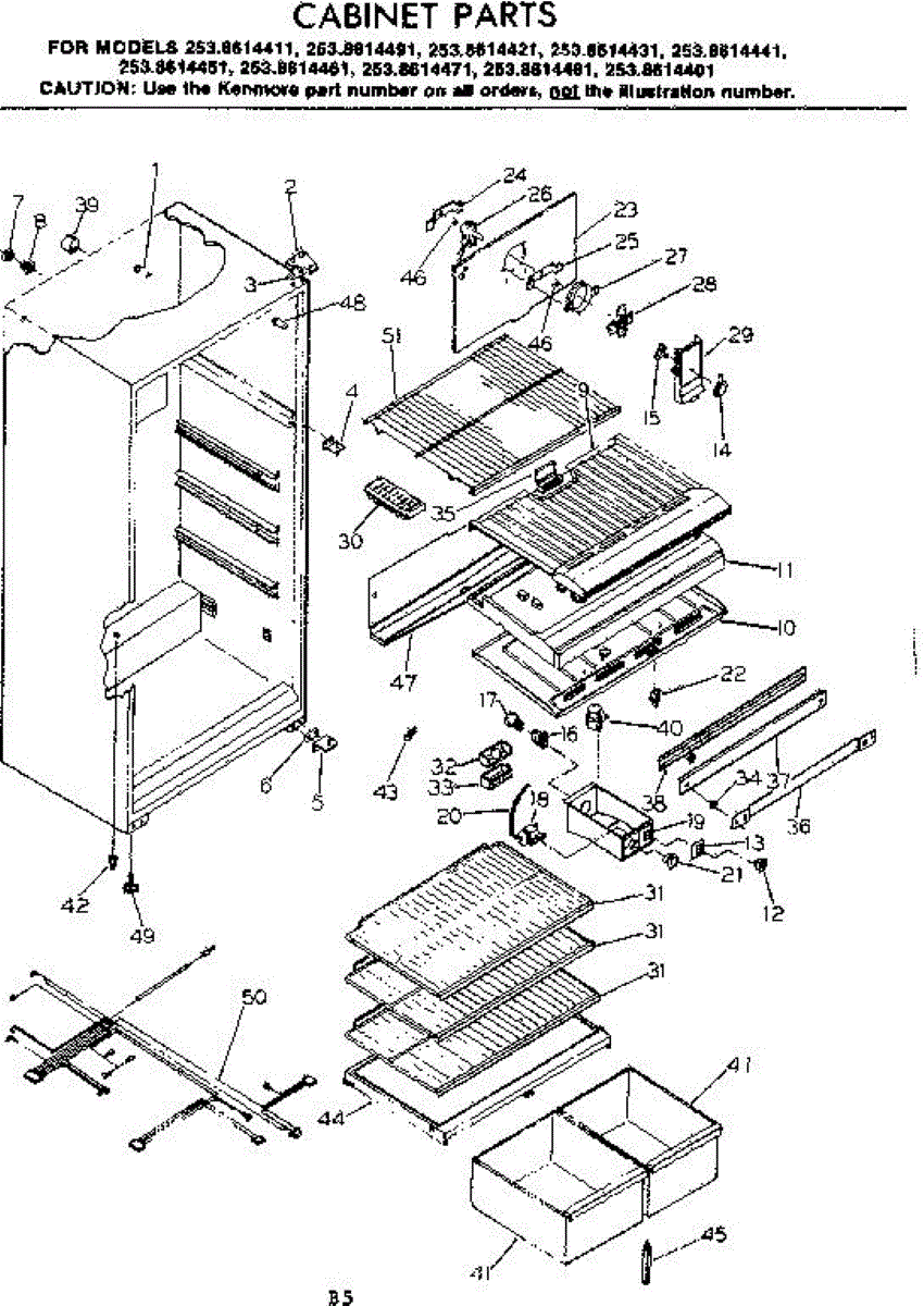 Parts for Kenmore 253.8614461 (2538614461, 253 8614461): Cabinet Parts