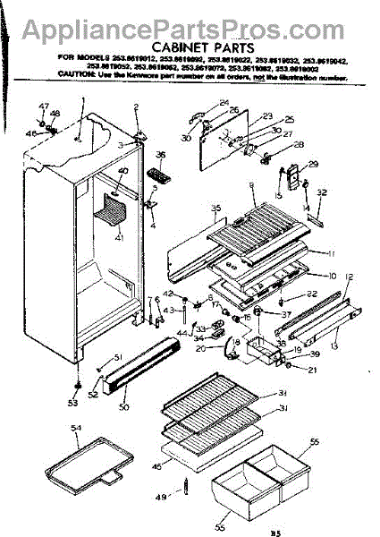 Parts for Kenmore 253.8619012 (2538619012, 253 8619012): Cabinet Parts