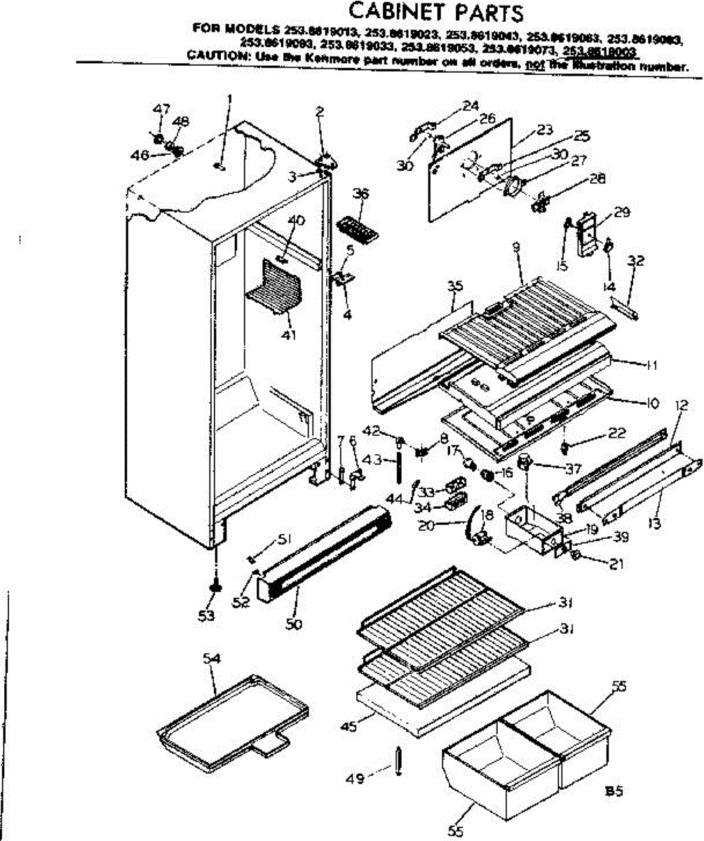 Parts for Kenmore 253.8619023 (2538619023, 253 8619023): Cabinet Parts