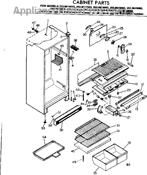 Parts for Kenmore 253.8619053 (2538619053, 253 8619053): Cabinet Parts