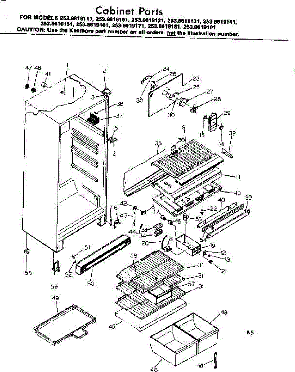 Parts for Kenmore 253.8619161 (2538619161, 253 8619161): Cabinet Parts
