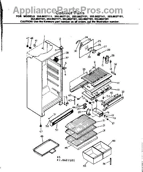 Parts for Kenmore 253.8627131 (2538627131, 253 8627131): Cabinet Parts