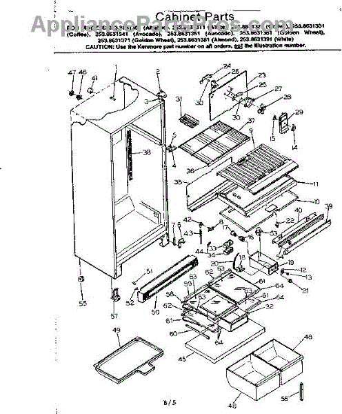 Parts for Kenmore 253.8631391 (2538631391, 253 8631391): Cabinet Parts