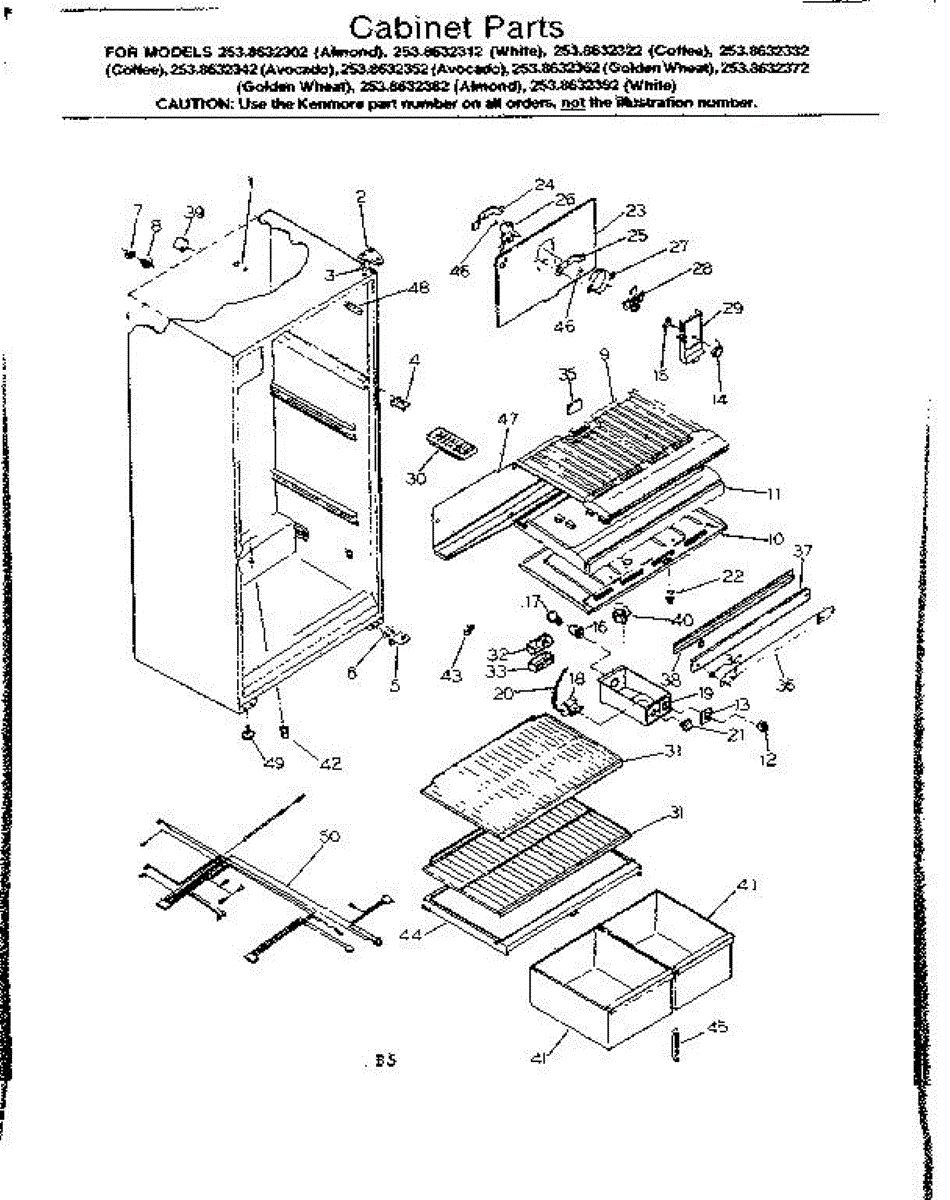 Parts for Kenmore 253.8632322 (2538632322, 253 8632322): Cabinet Parts