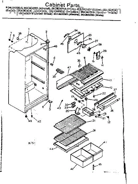 Parts for Kenmore 253.8632343 (2538632343, 253 8632343): Cabinet Parts
