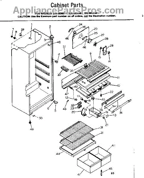 Parts for Kenmore 253.8636081 (2538636081, 253 8636081): Cabinet Parts
