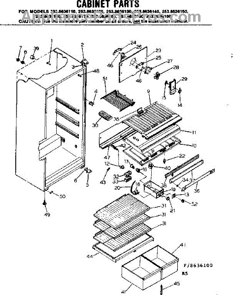 Parts for Kenmore 253.8636100 (2538636100, 253 8636100): Cabinet Parts