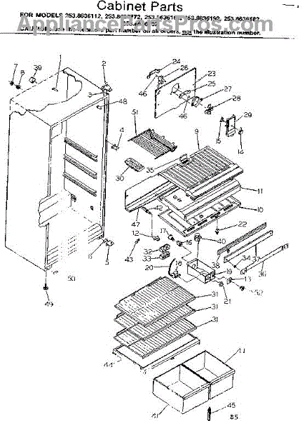Parts for Kenmore 253.8636112 (2538636112, 253 8636112): Cabinet Parts