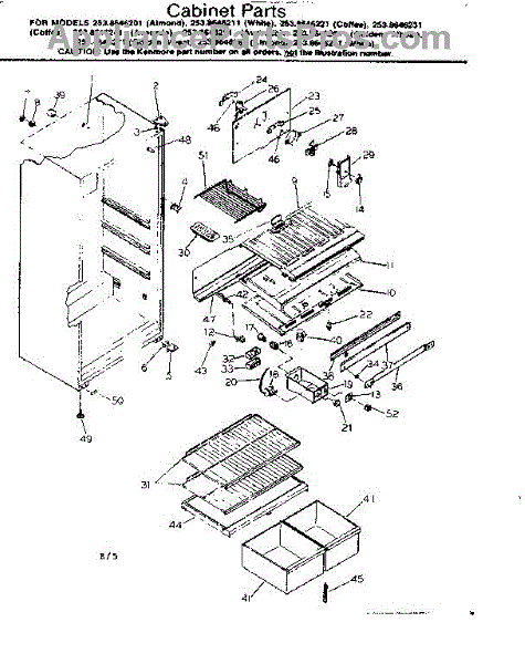 Parts for Kenmore 253.8646261 (2538646261, 253 8646261): Cabinet Parts