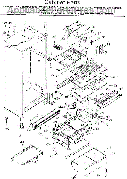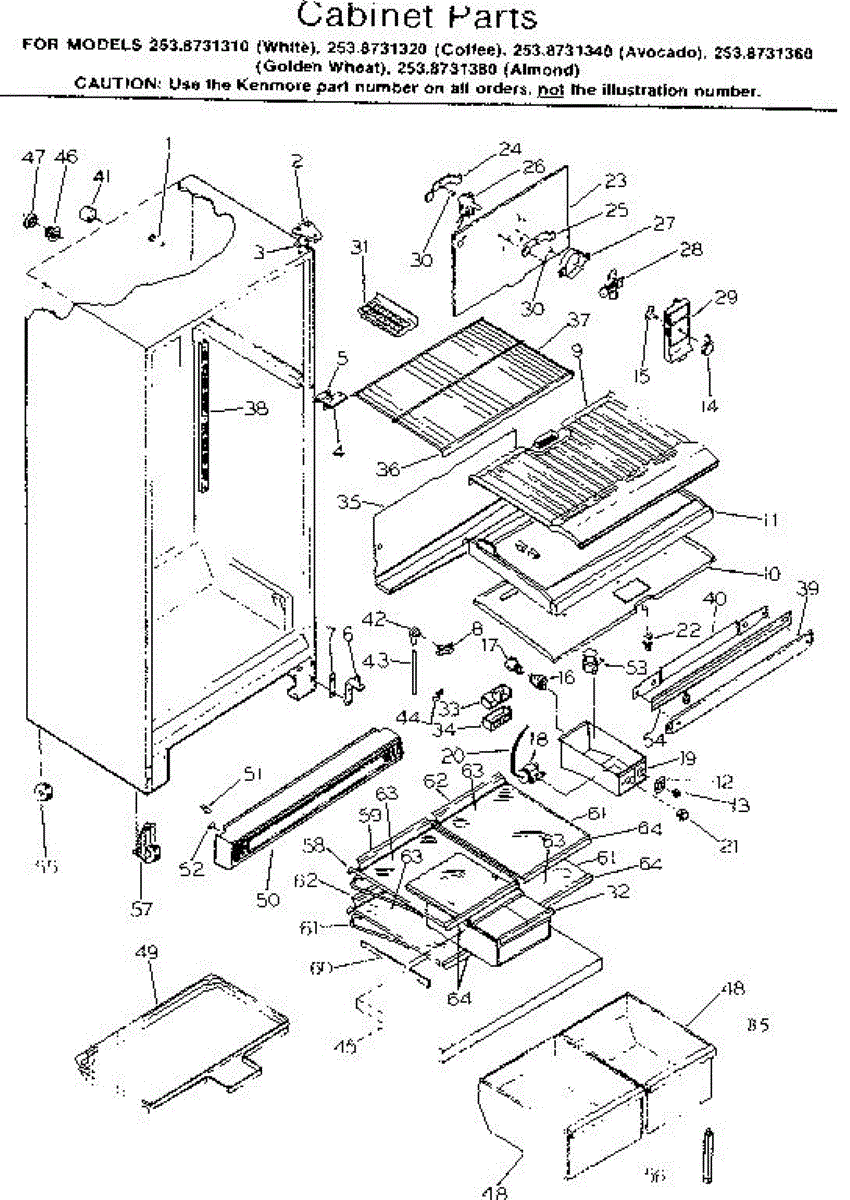 Parts for Kenmore 253.8731310 (2538731310, 253 8731310): Cabinet Parts