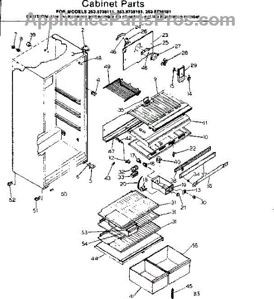 Parts for Kenmore 253.8738161 (2538738161, 253 8738161): Cabinet Parts