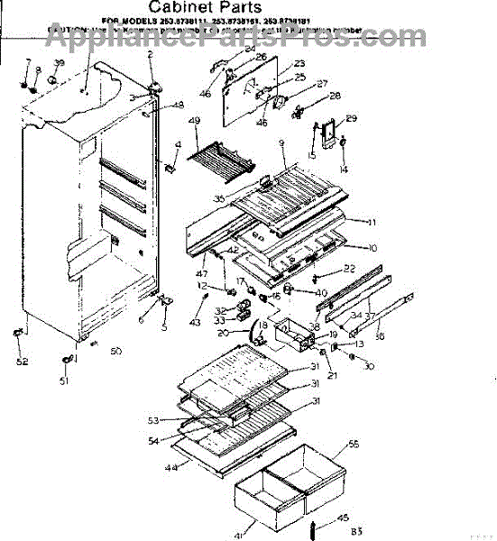 Parts for Kenmore 253.8738181 (2538738181, 253 8738181): Cabinet Parts