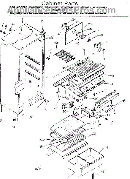 Parts for Kenmore 253.8738182 (2538738182, 253 8738182): Cabinet Parts