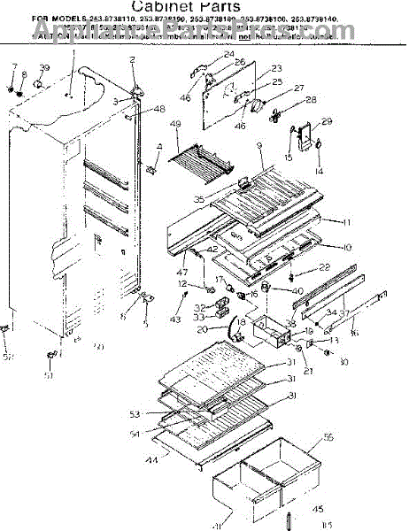 Parts for Kenmore 253.8738190 (2538738190, 253 8738190): Cabinet Parts