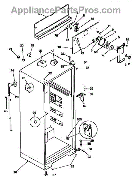 This plug covers the small factory test opening on an appliance cabinet or liner. Replacing a missing or damaged plug helps close the opening to maintain a better seal and restore a clean, finished appearance.