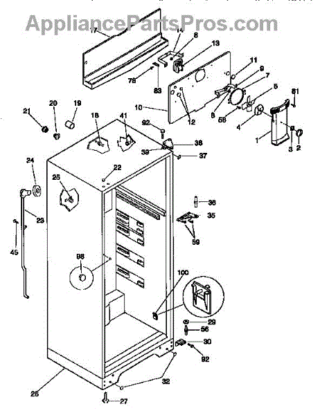 This plug covers the small factory test opening on an appliance cabinet or liner. Replacing a missing or damaged plug helps close the opening to maintain a better seal and restore a clean, finished appearance.