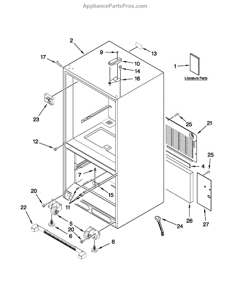 The Front Grille is an OEM replacement part for Whirlpool refrigerators. It is a decorative grille situated at the front bottom of the refrigerator that serves an important role in airflow. The grille allows for ventilation while protecting interior components from collecting dust and debris. Causes of a bad grille can be prolonged exposure to dirt and contaminants preventing proper ventilation, or damage from impact that deforms or cracks the grille structure. Symptoms of a bad grille include: