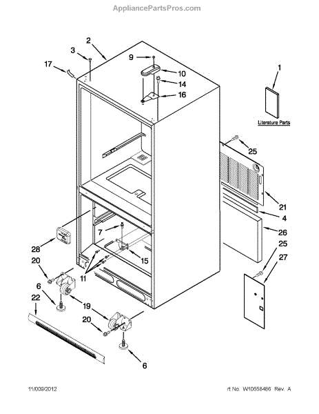 The Leveling Leg is an OEM replacement part for Whirlpool refrigerators. It is one of four legs situated internally at the base corners for proper tilt positioning. It raises or lowers each leg independently to stabilize units on uneven kitchen floors. Causes of replacement consist of wear from continual torque required during positioning processes. Thread damage or corrosion buildup attributable to floor locations over extended use necessitates periodic renewal as well. Symptoms involve: