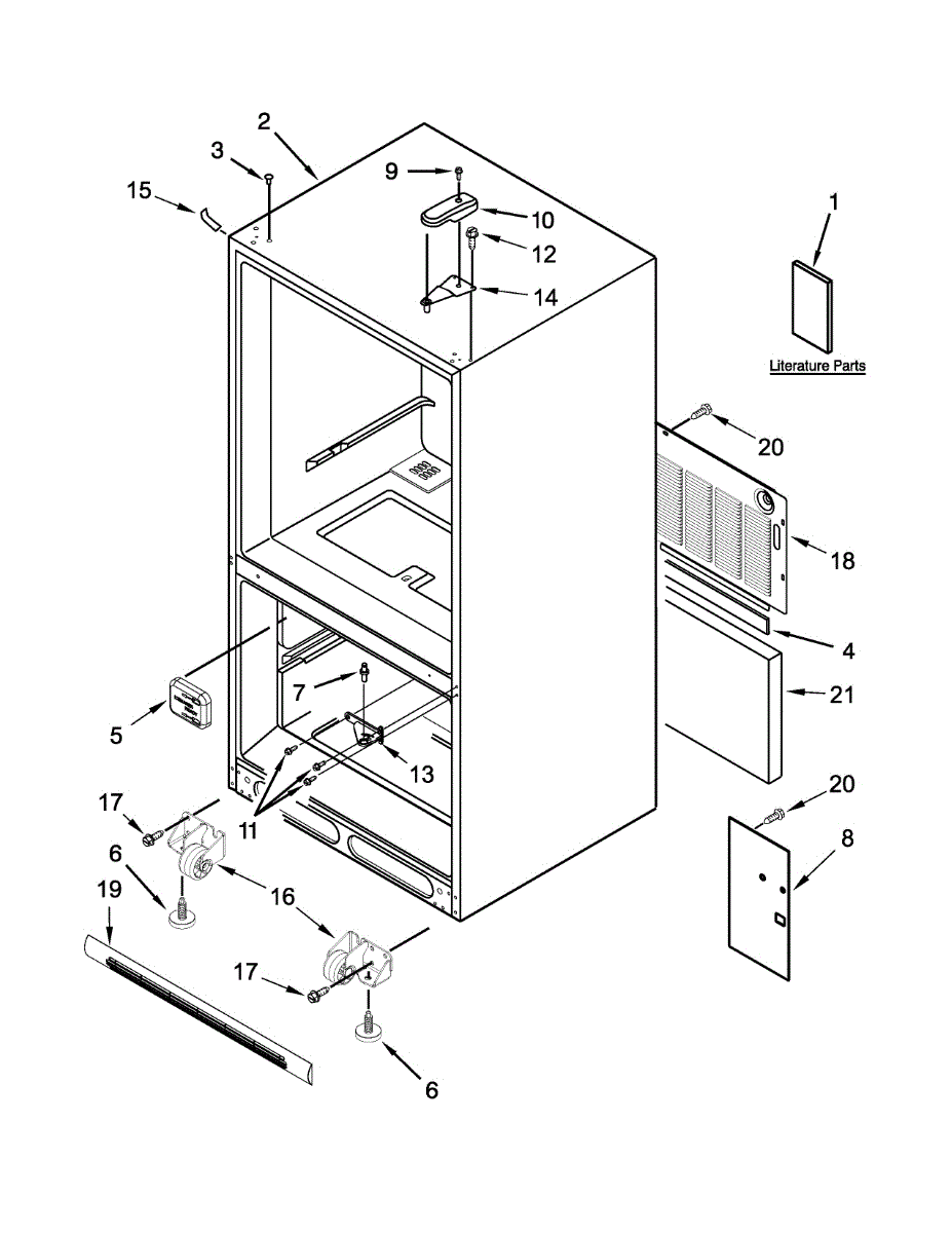 The Leveling Leg is an OEM replacement part for Whirlpool refrigerators. It is one of four legs situated internally at the base corners for proper tilt positioning. It raises or lowers each leg independently to stabilize units on uneven kitchen floors. Causes of replacement consist of wear from continual torque required during positioning processes. Thread damage or corrosion buildup attributable to floor locations over extended use necessitates periodic renewal as well. Symptoms involve: