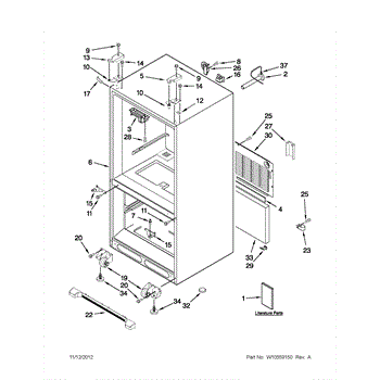 The Front Grille is an OEM replacement part for Whirlpool refrigerators. It is a decorative grille situated at the front bottom of the refrigerator that serves an important role in airflow. The grille allows for ventilation while protecting interior components from collecting dust and debris. Causes of a bad grille can be prolonged exposure to dirt and contaminants preventing proper ventilation, or damage from impact that deforms or cracks the grille structure. Symptoms of a bad grille include: