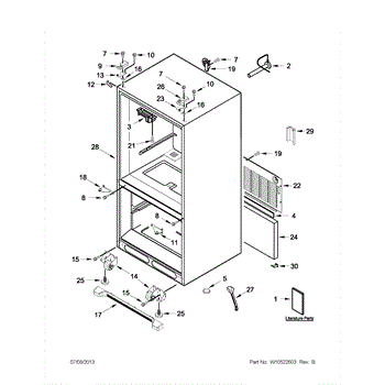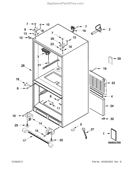 The Leveling Leg is an OEM replacement part for Whirlpool refrigerators. It is one of four legs situated internally at the base corners for proper tilt positioning. It raises or lowers each leg independently to stabilize units on uneven kitchen floors. Causes of replacement consist of wear from continual torque required during positioning processes. Thread damage or corrosion buildup attributable to floor locations over extended use necessitates periodic renewal as well. Symptoms involve: