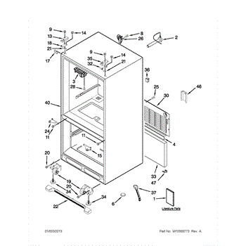 The Leveling Leg is an OEM replacement part for Whirlpool refrigerators. It is one of four legs situated internally at the base corners for proper tilt positioning. It raises or lowers each leg independently to stabilize units on uneven kitchen floors. Causes of replacement consist of wear from continual torque required during positioning processes. Thread damage or corrosion buildup attributable to floor locations over extended use necessitates periodic renewal as well. Symptoms involve: