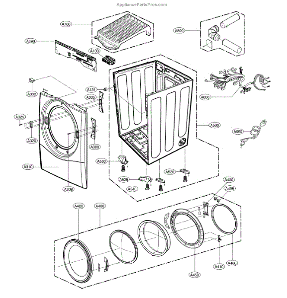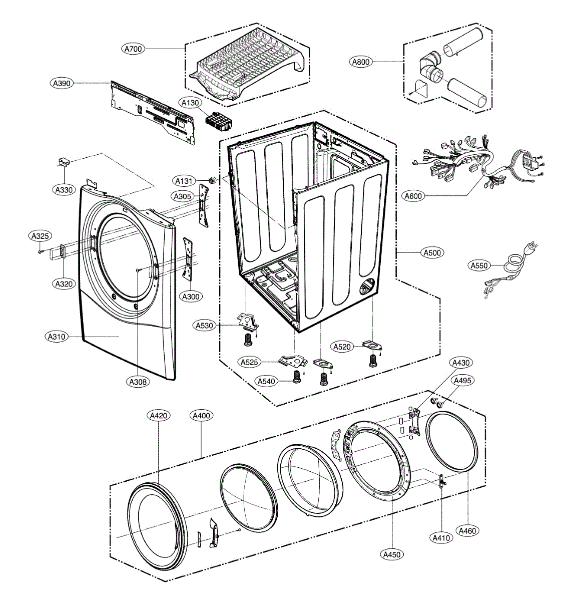 Complete dryer cabinet assembly that houses all internal components. Replace if your cabinet is cracked, rusted, damaged, or structurally compromised.