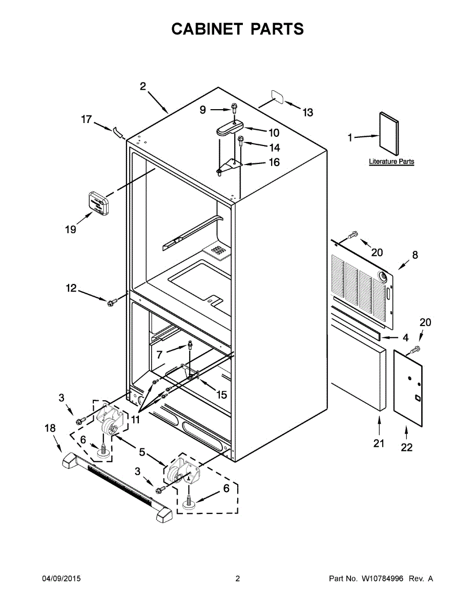 Parts for Kitchenaid KRBL102ESS00: 02 - Cabinet Parts