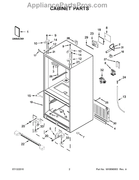The Leveling Leg is an OEM replacement part for Whirlpool refrigerators. It is one of four legs situated internally at the base corners for proper tilt positioning. It raises or lowers each leg independently to stabilize units on uneven kitchen floors. Causes of replacement consist of wear from continual torque required during positioning processes. Thread damage or corrosion buildup attributable to floor locations over extended use necessitates periodic renewal as well. Symptoms involve: