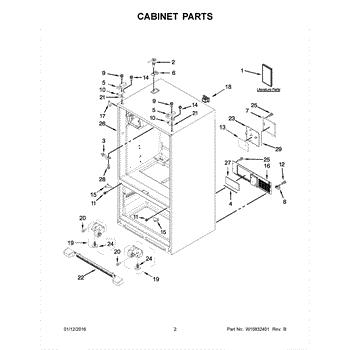 The Leveling Leg is an OEM replacement part for Whirlpool refrigerators. It is one of four legs situated internally at the base corners for proper tilt positioning. It raises or lowers each leg independently to stabilize units on uneven kitchen floors. Causes of replacement consist of wear from continual torque required during positioning processes. Thread damage or corrosion buildup attributable to floor locations over extended use necessitates periodic renewal as well. Symptoms involve: