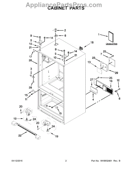 The Leveling Leg is an OEM replacement part for Whirlpool refrigerators. It is one of four legs situated internally at the base corners for proper tilt positioning. It raises or lowers each leg independently to stabilize units on uneven kitchen floors. Causes of replacement consist of wear from continual torque required during positioning processes. Thread damage or corrosion buildup attributable to floor locations over extended use necessitates periodic renewal as well. Symptoms involve: