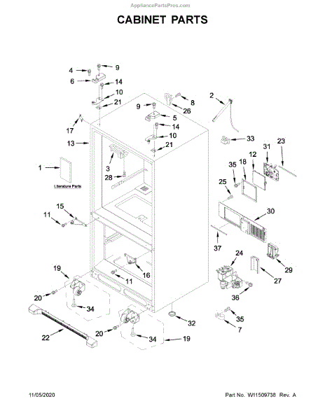 The Front Grille is an OEM replacement part for Whirlpool refrigerators. It is a decorative grille situated at the front bottom of the refrigerator that serves an important role in airflow. The grille allows for ventilation while protecting interior components from collecting dust and debris. Causes of a bad grille can be prolonged exposure to dirt and contaminants preventing proper ventilation, or damage from impact that deforms or cracks the grille structure. Symptoms of a bad grille include: