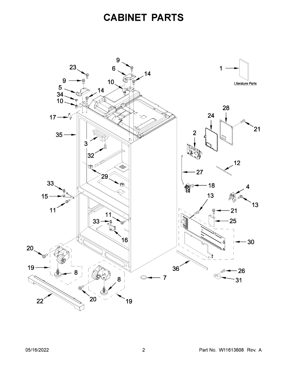This hinge cover assembly replaces a damaged or missing refrigerator hinge trim to protect the hinge, hide mounting hardware, and restore a finished appearance. It's a direct-fit exterior trim piece that improves safety and looks. What it does: