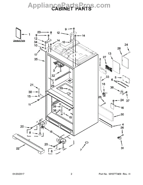 The Leveling Leg is an OEM replacement part for Whirlpool refrigerators. It is one of four legs situated internally at the base corners for proper tilt positioning. It raises or lowers each leg independently to stabilize units on uneven kitchen floors. Causes of replacement consist of wear from continual torque required during positioning processes. Thread damage or corrosion buildup attributable to floor locations over extended use necessitates periodic renewal as well. Symptoms involve: