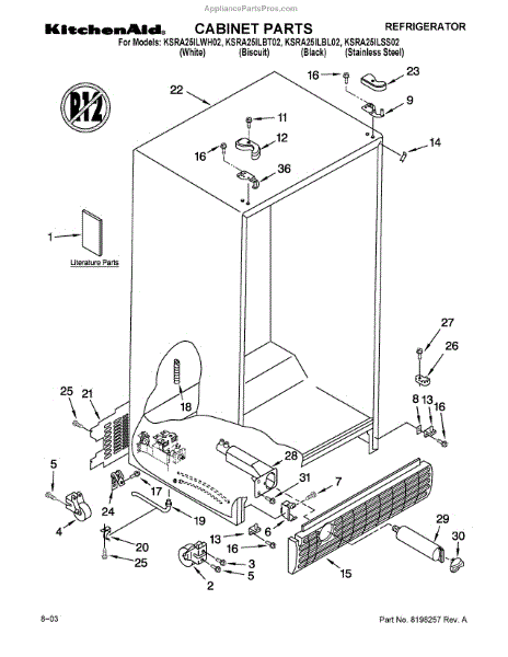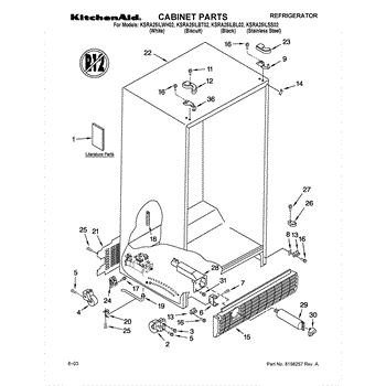 Parts for Kitchenaid KSRA25ILBT02: Cabinet Parts