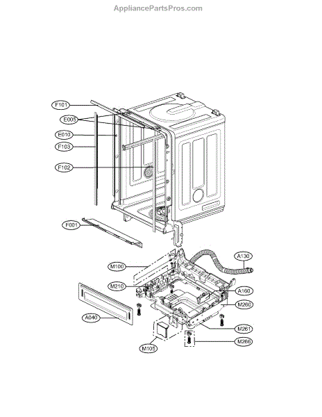 The Outer Door Seal is an OEM replacement part for LG dishwasher doors. Situated around the door opening, it creates a tight seal when closed to contain moisture, heat, and germs within the wash chamber. Proper door sealing is essential for sanitization, drying performance, and protection of surrounding cabinetry. Causes can be deterioration of sealing material over extended use, cracks or deformities allowing passage of water and air, or damage from closing force on the rigid door. Symptoms of a bad seal include: