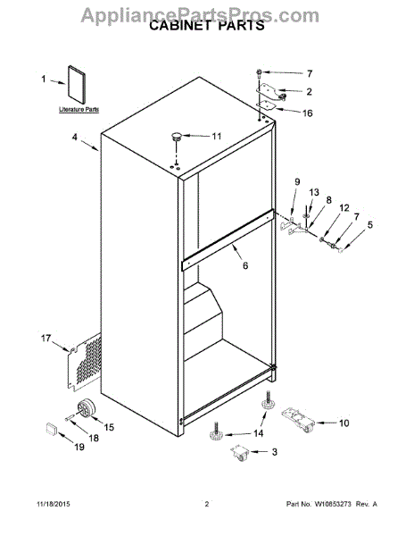 The Hinge Washer is an OEM replacement part for Whirlpool refrigerators. This small washer plays a supports the refrigerator door hinge assembly. Center hinge plastic washer. Causes of a bad hinge washer are generally normal wear and tear from extensive use. As the washer absorbs pressure each time the door is opened or closed, it can gradually deteriorate or crack. Physical damage is also possible if the door is accidentally struck or slammed. Symptoms of a worn or damaged hinge washer include: