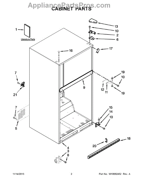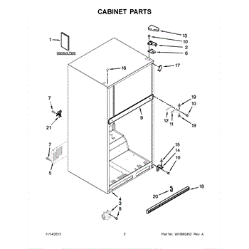 The Hinge Washer is an OEM replacement part for Whirlpool refrigerators. This small washer plays a supports the refrigerator door hinge assembly. Center hinge plastic washer. Causes of a bad hinge washer are generally normal wear and tear from extensive use. As the washer absorbs pressure each time the door is opened or closed, it can gradually deteriorate or crack. Physical damage is also possible if the door is accidentally struck or slammed. Symptoms of a worn or damaged hinge washer include:
