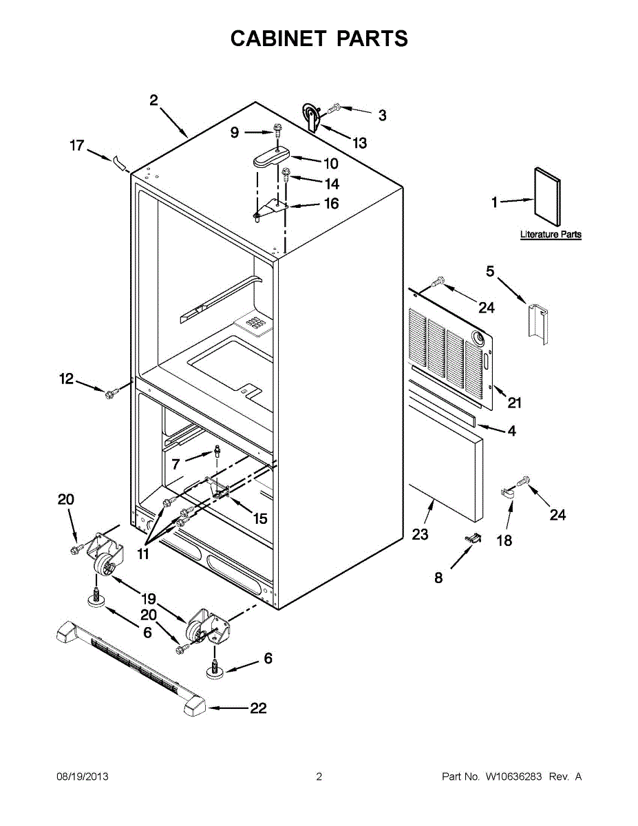 The Leveling Leg is an OEM replacement part for Whirlpool refrigerators. It is one of four legs situated internally at the base corners for proper tilt positioning. It raises or lowers each leg independently to stabilize units on uneven kitchen floors. Causes of replacement consist of wear from continual torque required during positioning processes. Thread damage or corrosion buildup attributable to floor locations over extended use necessitates periodic renewal as well. Symptoms involve: